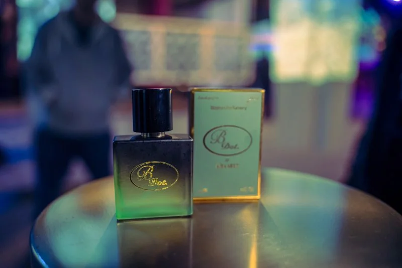 Large scale projection mapping transformed the exterior of the old tire shop into a canvas for Azia’s animations. Inside, visitors were invited to sniff different scents that capture memories of fun that were all created by Dorchester community members. Also on display was B. Dot, a Dorchester-inspired perfume developed by Azia and Boston Perfumery.